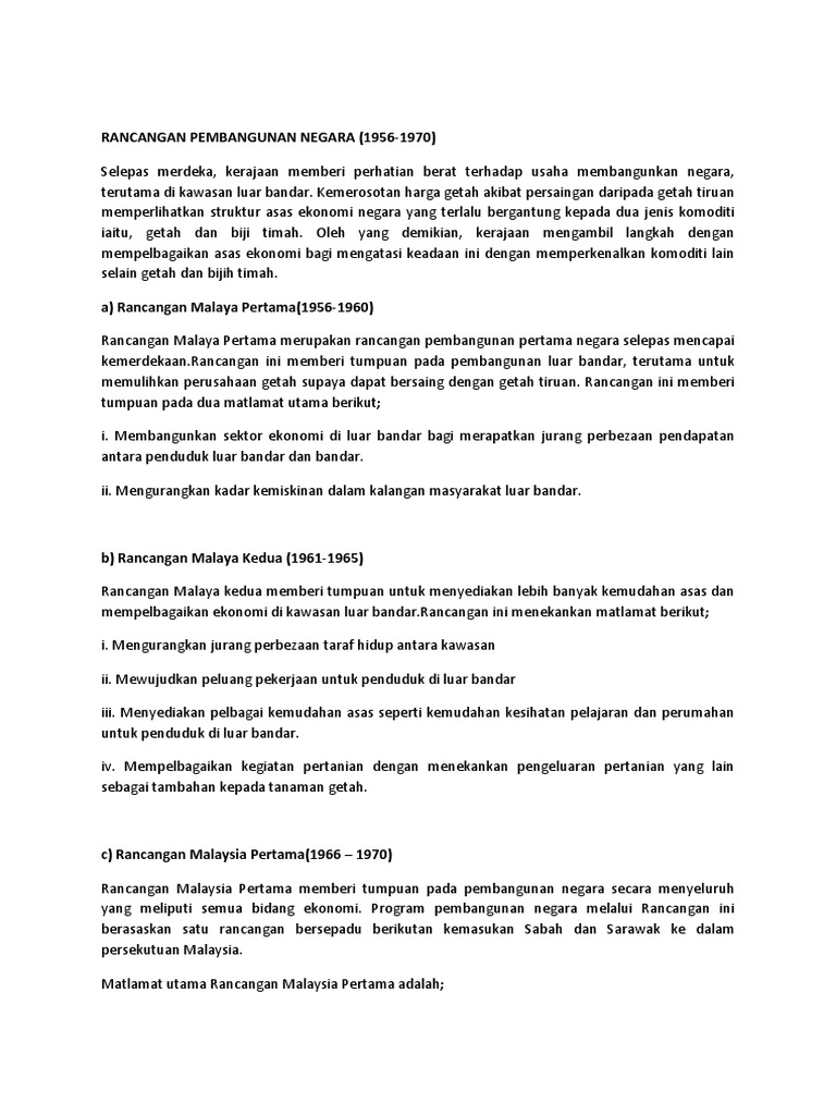 Rancangan Pembangunan Negara Malaysia 1956 1970 Pdf